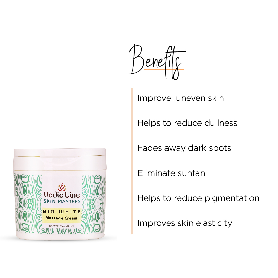 From the moment you apply Bio White Massage Cream, you’re greeted by its silky texture that glides effortlessly over the skin, making every massage a moment of pure bliss. The cream’s unique formulation is meticulously crafted to penetrate deeply into the skin, delivering essential nutrients that help improve texture, tone, and overall radiance.