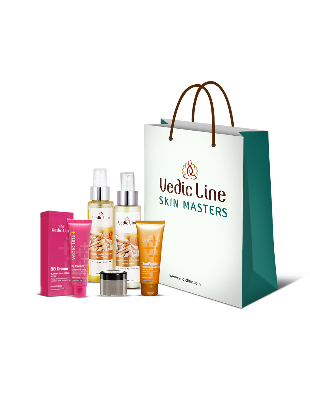 Give your skin the care it deserves with the Vedicline Gift Hampers for Skin Safeguard & Restoration; in fact, this is a thoughtfully curated collection of skincare essentials designed to protect, nourish, and restore your skin’s natural glow. Furthermore, infused with the goodness of sandalwood, turmeric, and chocolate, this hamper provides a perfect blend of hydration, sun protection, and skin-enhancing benefits. As a result, it helps to keep your skin looking fresh, youthful, and healthy.