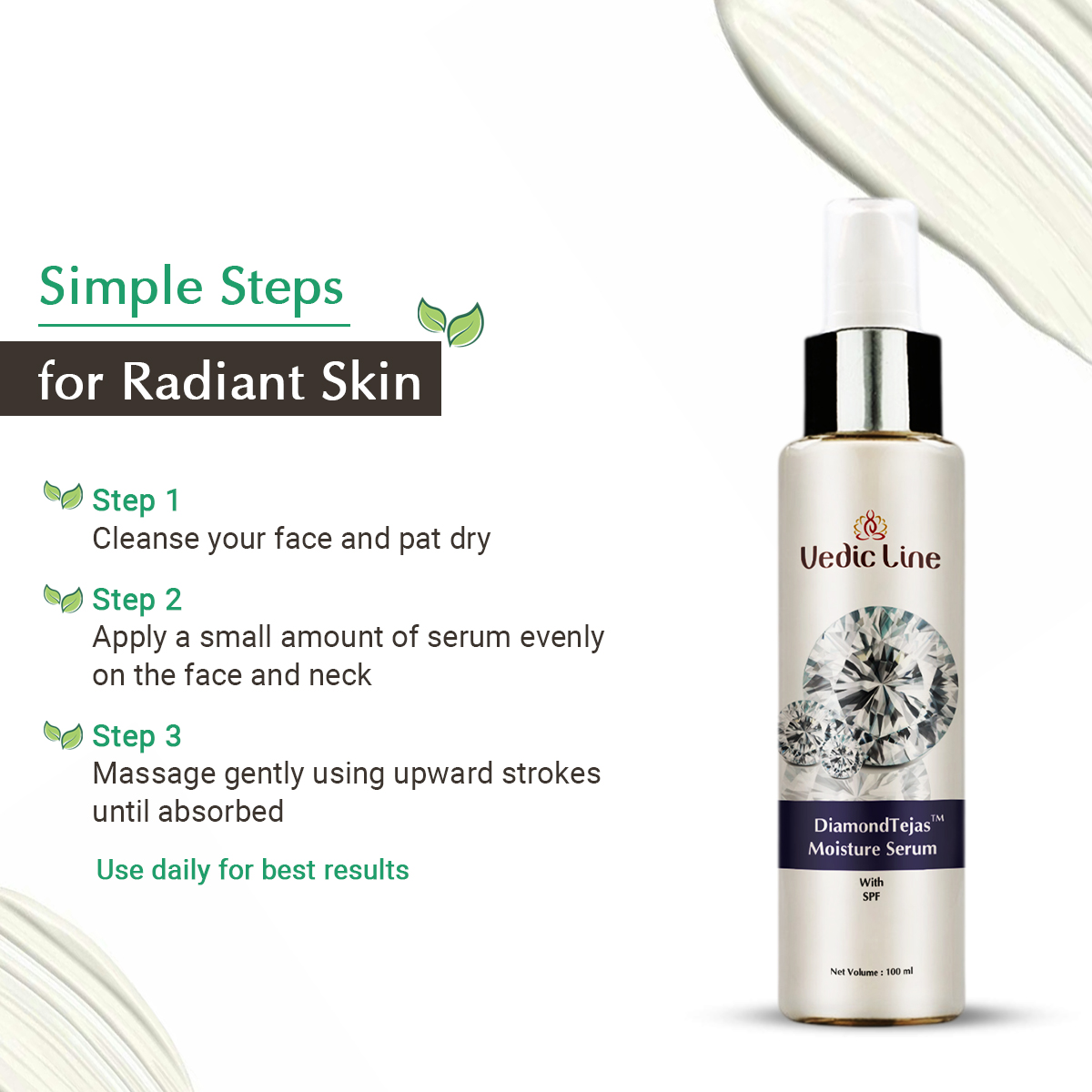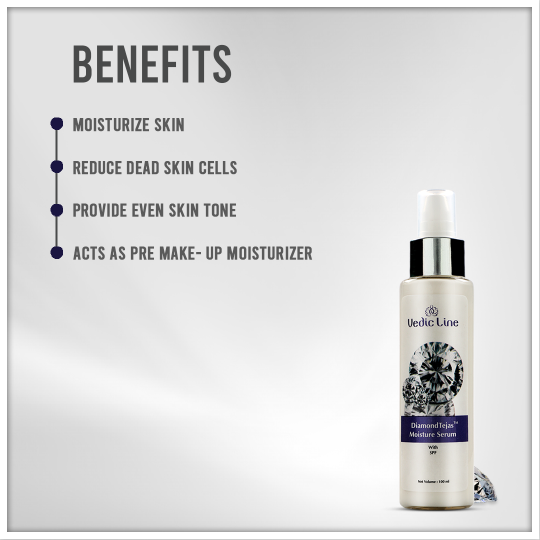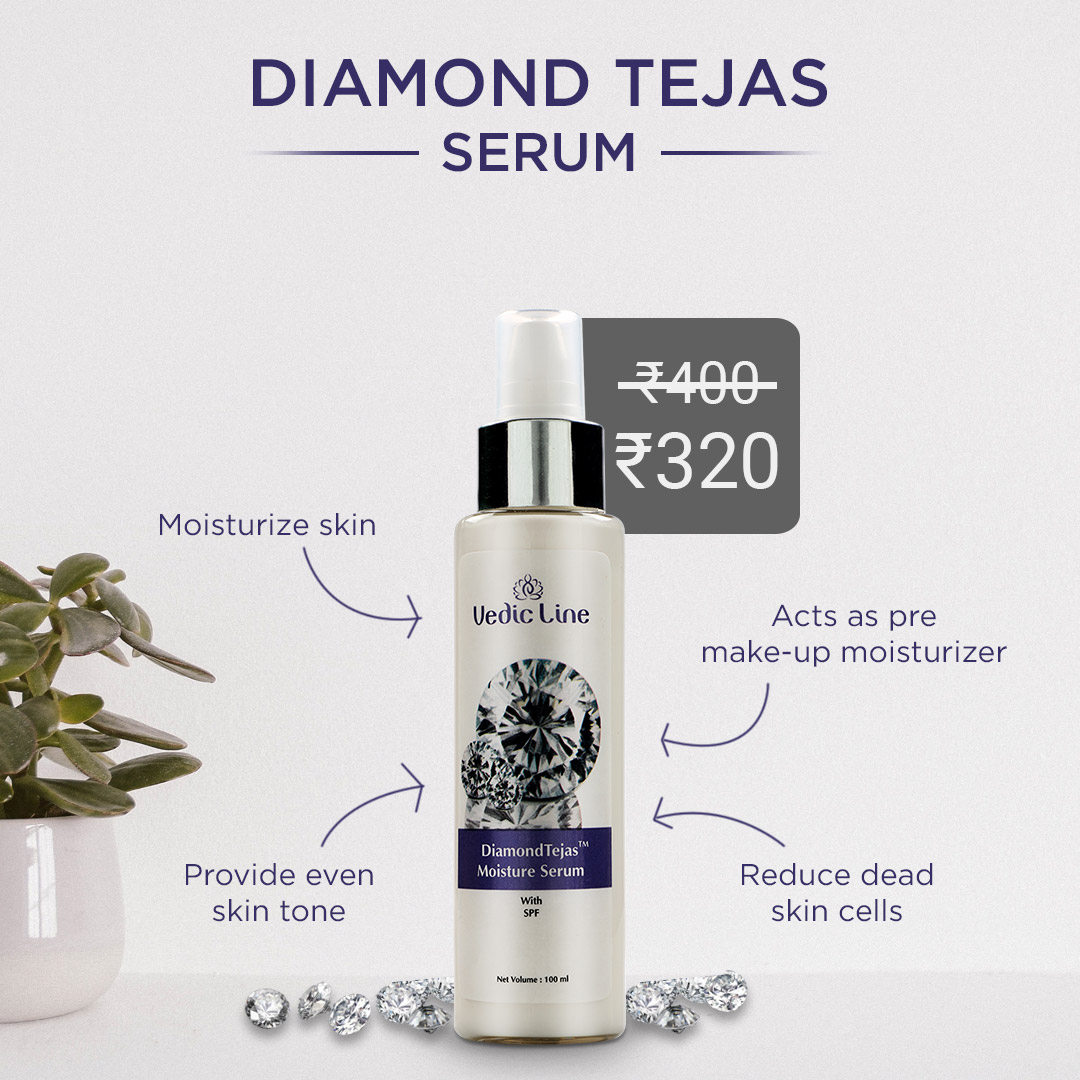 Make your skin shine like never before wth Vedicline Diamond Tejas Serum with SPF — where radiance meets protection, and tradition blends with innovation.