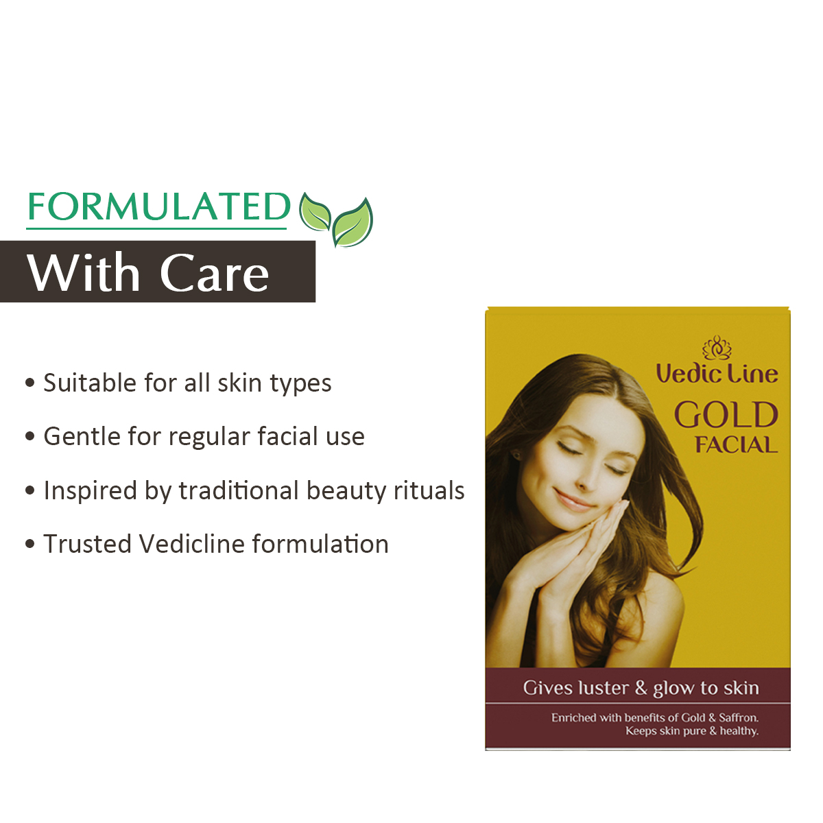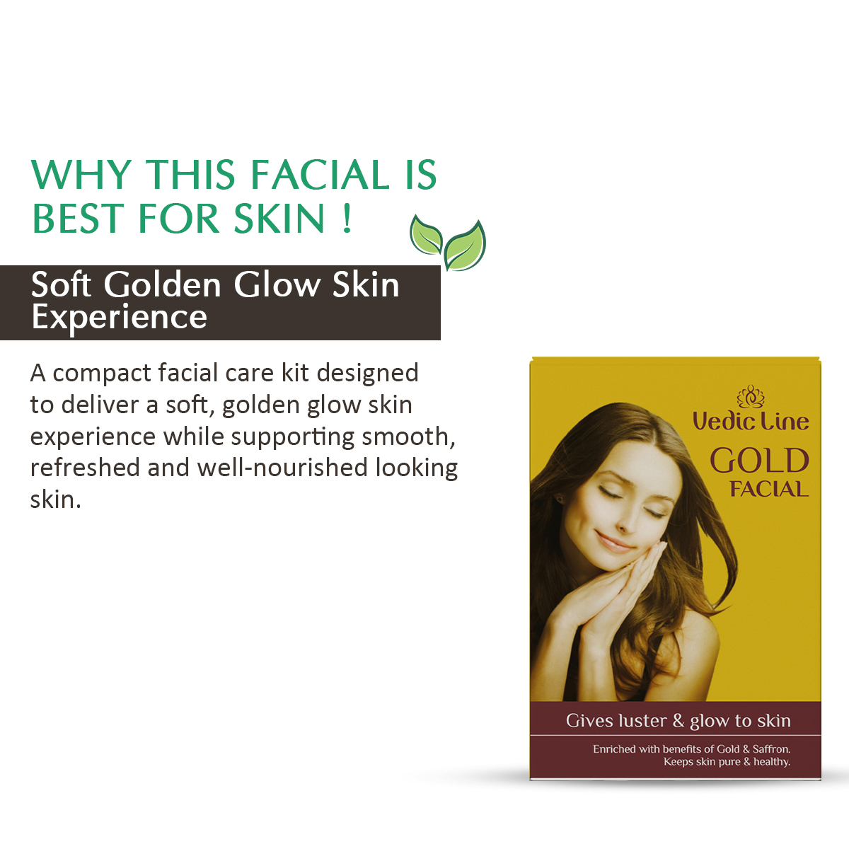 Vedicline GOLD Facial Kit (Mono Dose Pack Of 4) offers a complete skincare regimen that promotes radiance, rejuvenation, and youthful skin. With the power of gold in every product, your skin will feel nourished, smooth, and visibly brighter after just one use.
