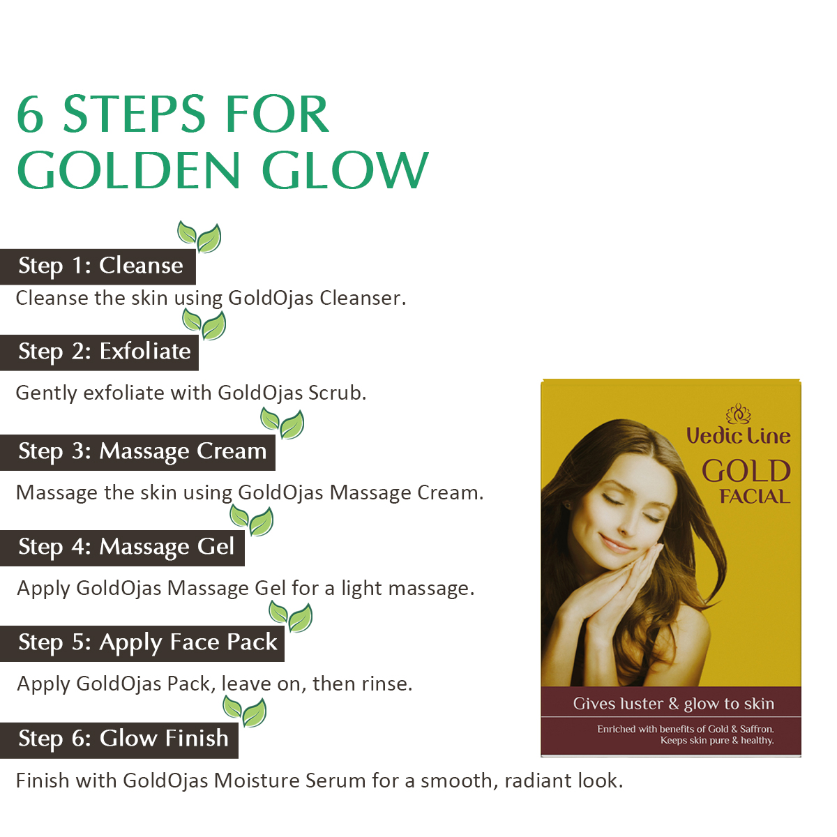 Step 6 : Protect & Glow – Lightly apply GoldOjas Moisture Serum.
