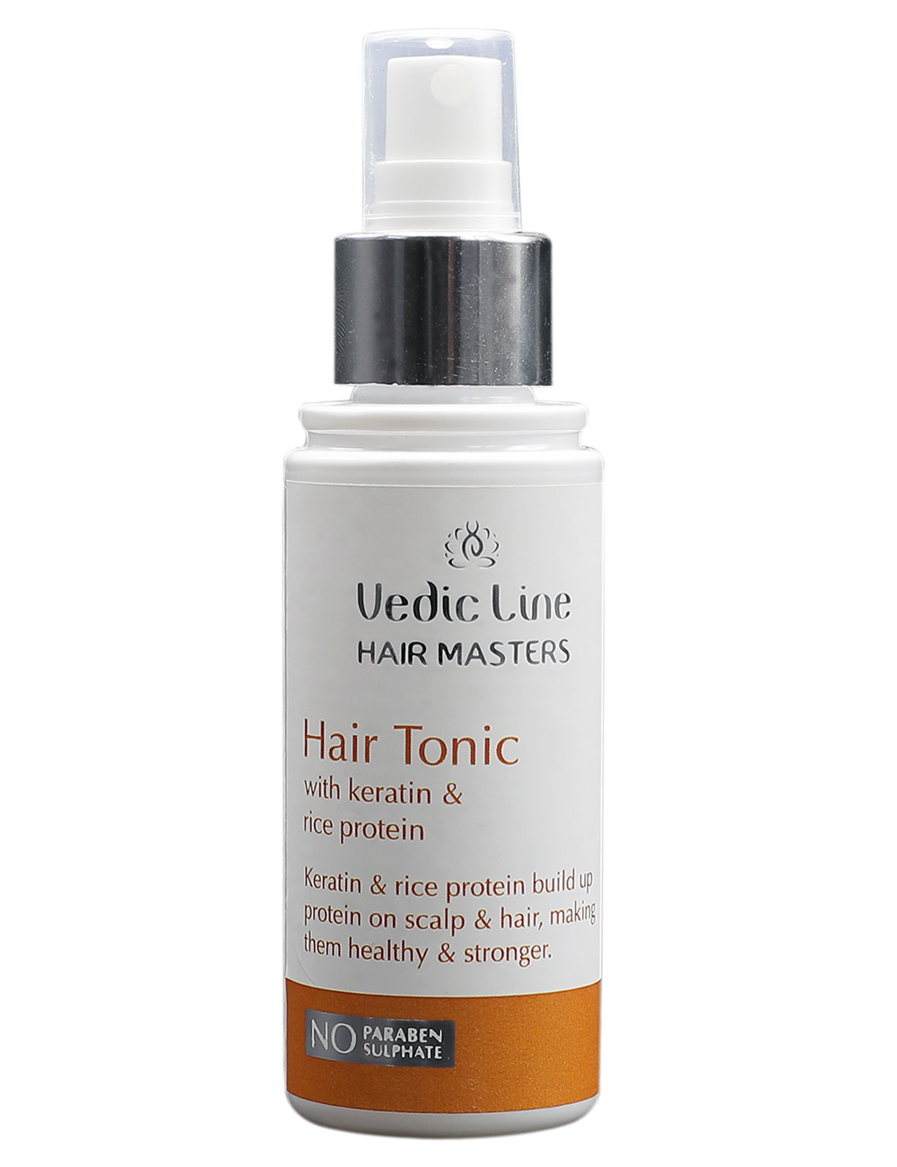 Power up your haircare routine with Vedicline Hair Tonic with Keratin & Rice Protein – a lightweight, high-performance formula designed to strengthen, revitalize, and fortify your hair from root to tip.