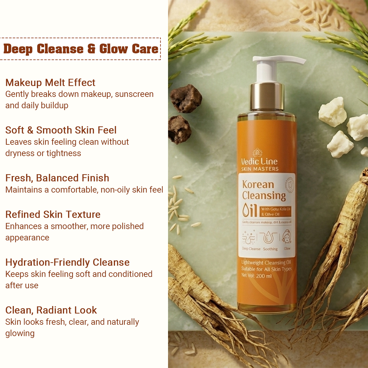 Most cleansers clean your face but leave it feeling dry, tight, or irritated. Korean Cleansing Oil is different. This silky, plant-based cleansing oil is built on the famous Korean double-cleansing method — a simple two-step routine that has given millions of people around the world clean, clear, and glowing skin. Packed with four nourishing botanical oils, it removes every trace of makeup, sunscreen, and daily grime while keeping your skin barrier completely healthy and intact.