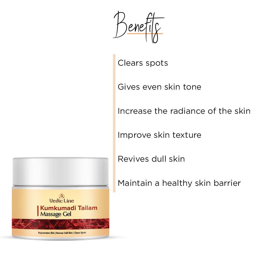 Additionally, indulge in the goodness of nature and let your skin radiate health and vitality every day with the Kumkumadi Tailam Massage Gel.