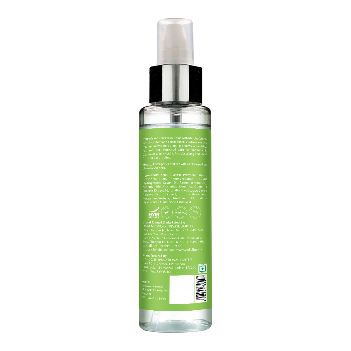 Aqua, Glycerin, Propylene Glycol, Polysorbate 20, Phenoxyethanol, PEG-40 Hydrogenated Castor Oil, Parfum (Fragrance), Niacinamide, Ceramide Complex, Camellia Sinensis Extract, Morus Alba Root Extract, Carica Papaya Fruit Extract, Sodium Benzoate, Potassium Sorbate, Disodium EDTA, Sodium Hyaluronate, Glutathione, Citric Acid