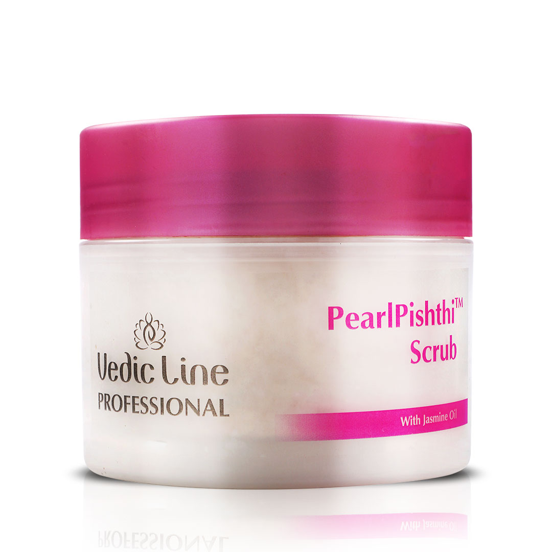 A. The Pearl Pishthi Gel Scrub contains Jasmine il and pearl powder.