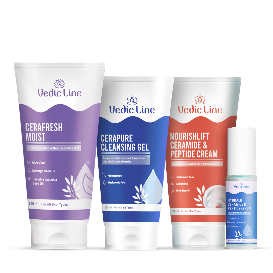 Strengthen, hydrate, and restore your skin with the Pepti-Cera Power Combo. Specifically, this carefully curated set of skincare essentials is designed to deeply nourish and protect your skin barrier. Furthermore, this powerful combination includes Cerapure Cleansing Gel, HydraLift Ceramide & Peptide Serum, NourishLift Ceramide & Peptide Cream, and CeraFreshMoist. Notably, each product is formulated with ceramides and peptides to deliver intense hydration, repair, and firmness, ultimately resulting in a healthy, youthful glow.