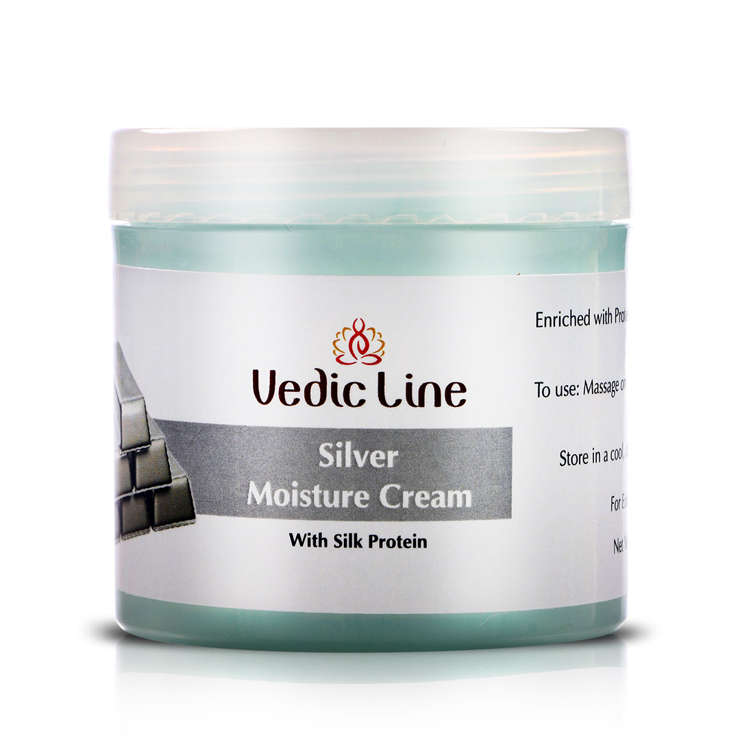 The magical blend of Silver Extract , Almond Oil, Olive Oil, Shea Butter, Cocoa Butter, Wheatgerm Oil, Tea Tree, Jasta Bhasma, helps improve texture and gives your skin that healthy, dewy look. With regular use of Silver Moisture Cream, you’ll notice smoother skin, less dryness, and a fresh, glowing complexion that lasts all day long.