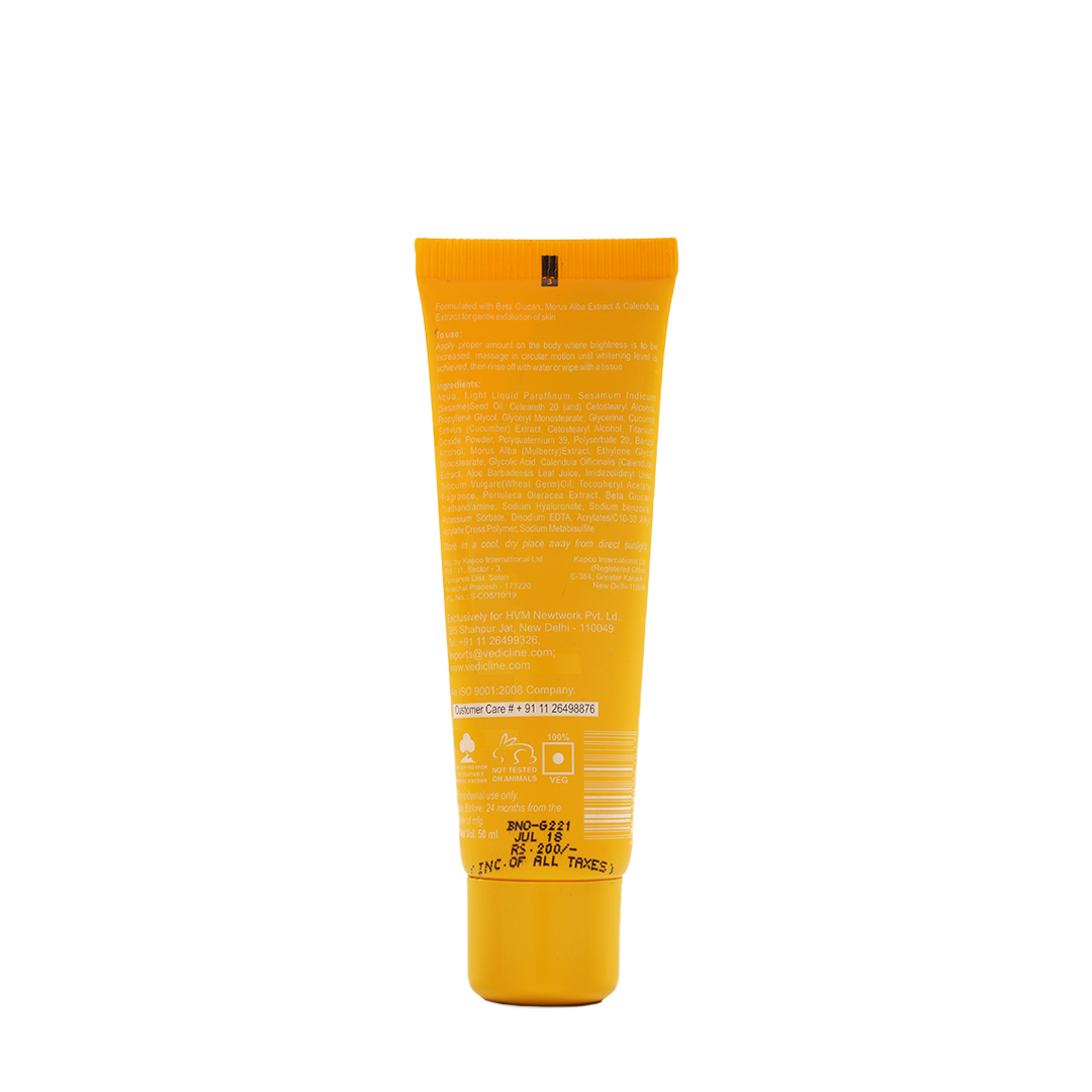 Tan removal cream formulated with Beta Glucon, Morus Alba Extract and Calendula Extract for gentle exfoliation of the skin.