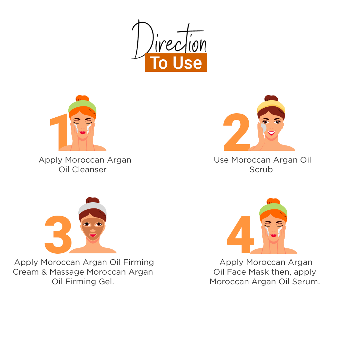 1. Cleanser – With a few drops of Moroccan Argan Oil Cleanser, lightly massage on wet skin and clean it.