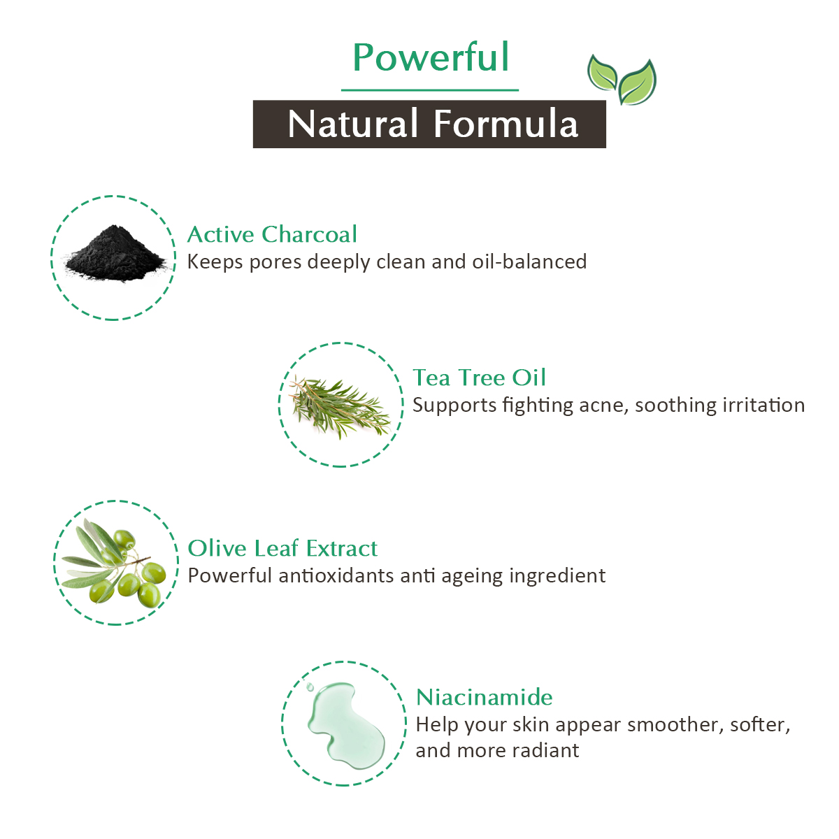 To begin your ritual, start with the Active Charcoal Cleanser. This powerful formula exploits the natural detoxifying properties of activated charcoal to effectively remove impurities, excess oil, and environmental pollutants. Furthermore, its gentle cleansing action preps your skin, leaving it refreshed and balanced without stripping away essential moisture.