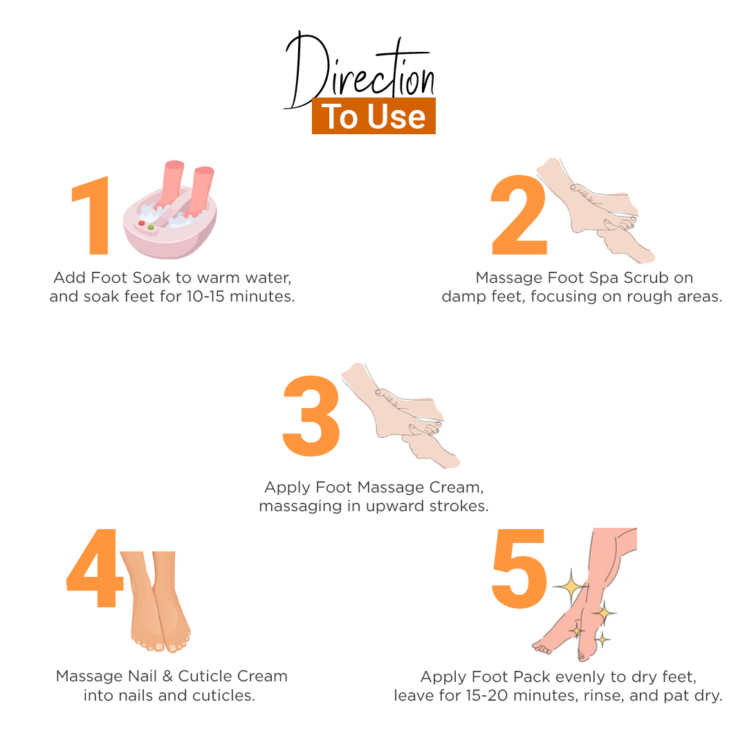 Step 2: After soaking, apply Foot Spa Scrub to damp feet. Gently massage in circular motions, focusing on rough areas.