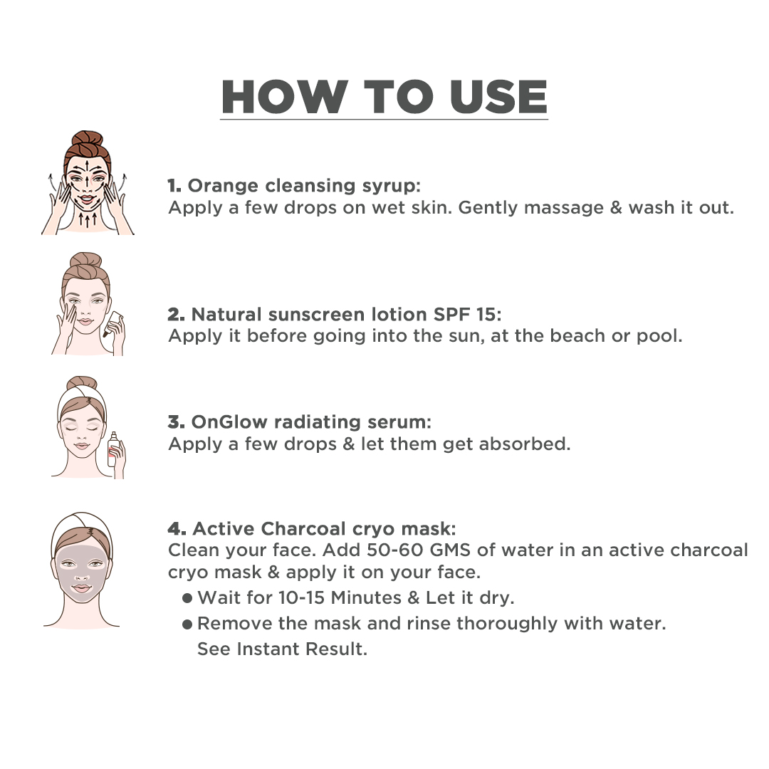 Active Charcoal cryo mask:  Clean your face. Add 50-60 GMS of water in an active charcoal cryo mask & apply it on your face.